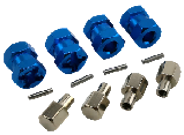 Wheel hubs, hex (blue-anodized, lightweight aluminum) (2)/ axle pins(4)