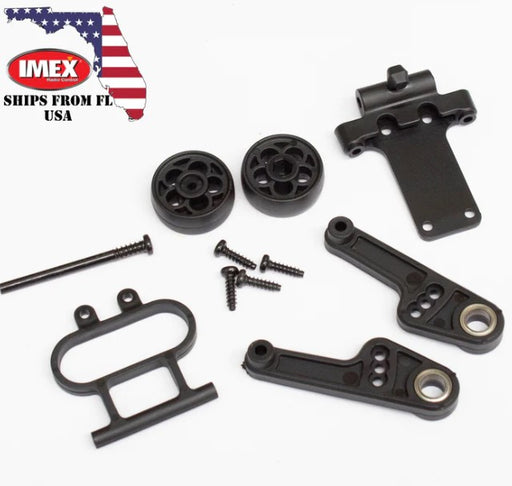 TRAXXASWheels, wheelie bar (2)/ axles, wheelie bar (2)/ 10x15x4 plastic bushings (4) (for #7776, 8976, or 9576 wheelie bar)