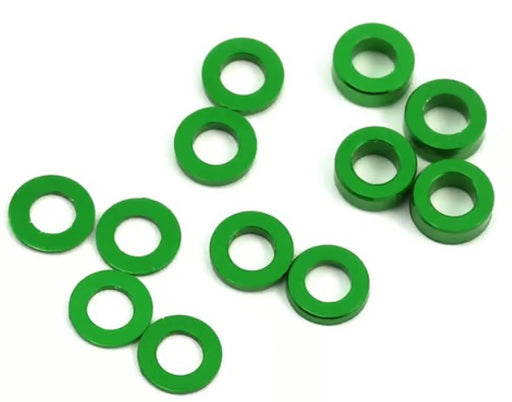 ProTek RC Aluminum Ball Stud Washer Set (Green) (12) (0.5mm, 1.0mm & 2.0mm)